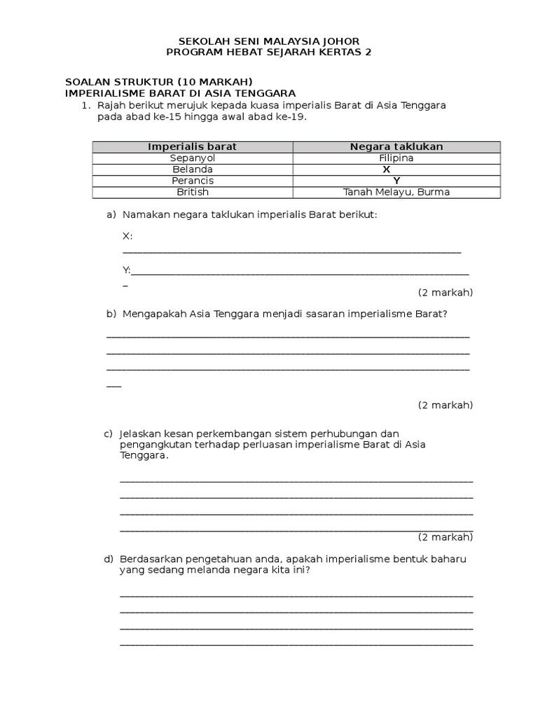 Related Posts To Soalan Esei Sejarah Imperialisme Barat Soalan Esei Sejarah Imperialisme Barat 2020-05-22T172100-0700 Rating. Koleksi Soalan Latihan Nota Modul Sejarah Tingkatan 4 Jawapan. Soalan dan jawapan prosa tradisional burung terbang dipipiskan lada.